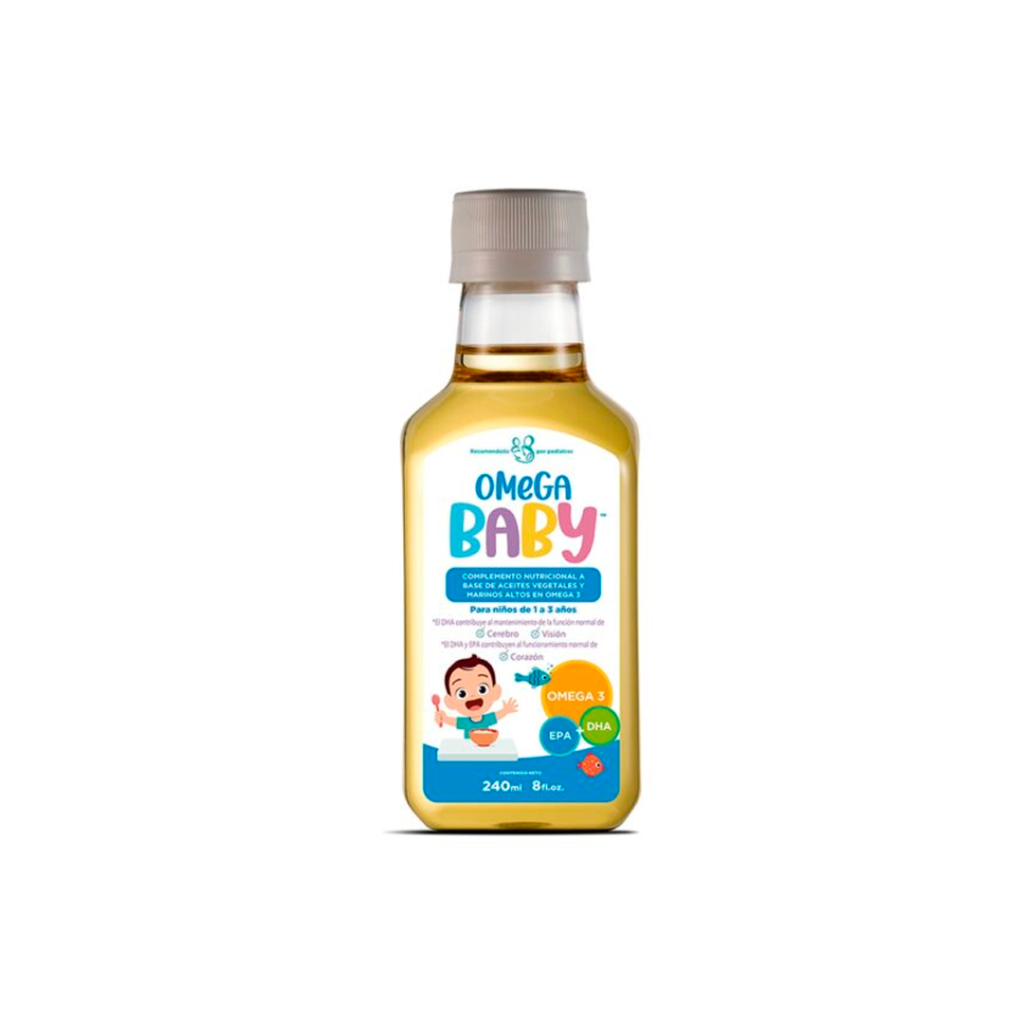 OMEGABABY es el complemento nutricional perfecto para niños de 1 a 3 años, formulado con aceites vegetales y marinos 100% naturales, ricos en Omega-3 de alta calidad (DHA y EPA). Diseñado y recomendado por pediatras, OmegaBaby ofrece beneficios clave para el desarrollo integral de los más pequeños: